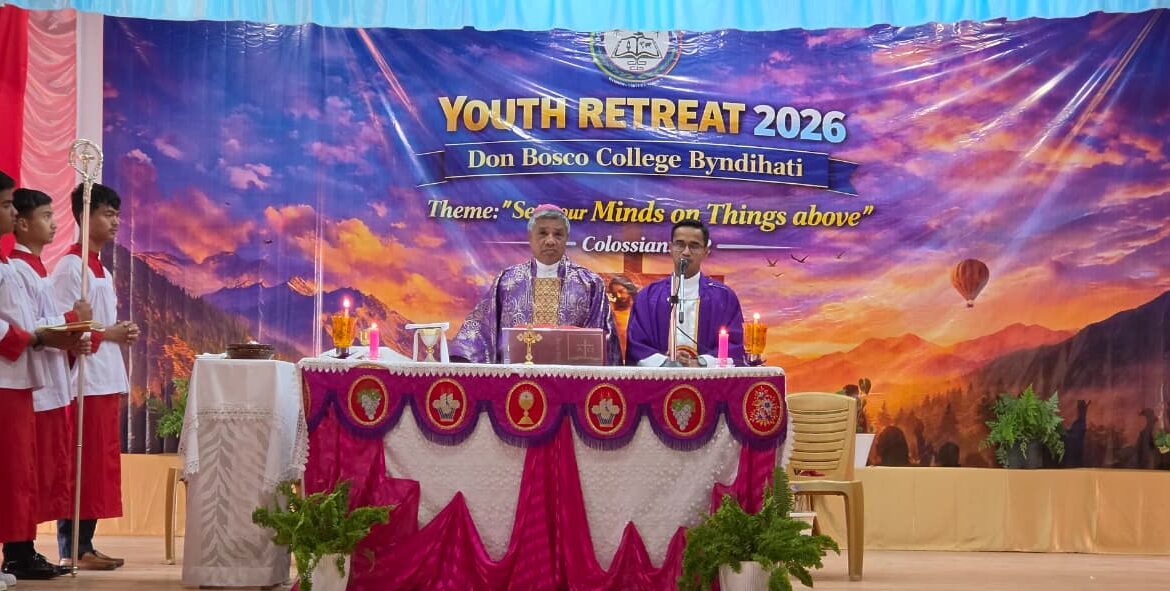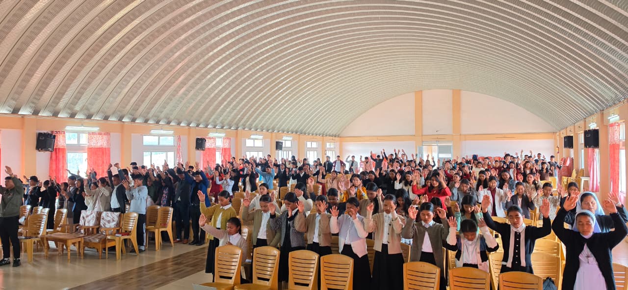 Byndihati, 22nd March 2026: The campus of Don Bosco College, Byndihati, was transformed into a sanctuary of prayer and reflection from 20th March to 22nd March 2026, during its Annual Spiritual Retreat. Guided by the scriptural theme, “Set your minds on things above, not on earthly things” (Colossians 3:2), the event attracted 280 young people, from the college and the neighbouring villages, eager to deepen their faith. The retreat was animated by the dynamic leadership of Mr. Naveen Lobo from Mysore and the Jesus Youth team from Shillong, who together fostered an environment of high-energy worship and profound contemplation.