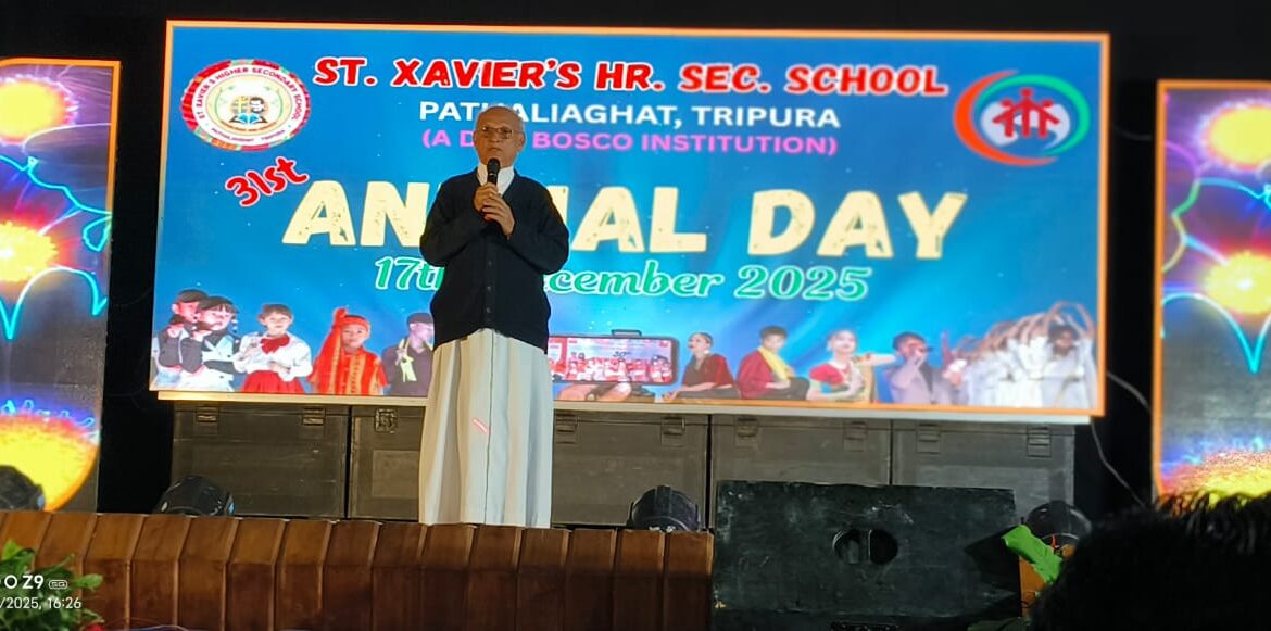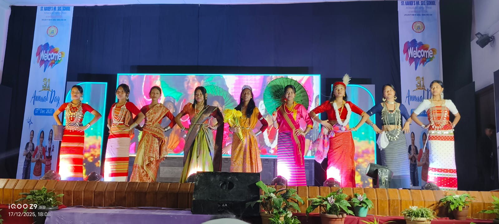 Pathaliaghat, 17th December 2025: The 31st Annual Day of St. Xavier’s Higher Secondary School, Pathaliaghat was celebrated with great joy and splendour on 17th December 2025 in the school hall, with Dr. Siddharth Shiv Jaiswal, IAS, District Magistrate of Sepahijala, as the Chief Guest. A huge crowd of parents, guests and well-wishers attended the open-invitation programme, while the beautifully decorated hall and campus reflected the festive spirit of Christmas. The celebration began with an invocation prayer by Fr. K. K. Joseph, the Rector, followed by a warm welcome by Fr. Babu Stephen, the Principal, and a graceful prayer dance by the convent girls. The cultural programme featured vibrant dances, musical band performances, a skit on saving trees and the earth by pre-primary students, and a variety of traditional and modern dances, including Garhwali, Mamita, Dandiya, Nigerian bamboo and special performances by hostel boys, all presented in superb costumes. The students mesmerized the audience with their spectacular and professional performances, enhanced by excellent sound, lighting and LED display. The Chief Guest praised the school’s magnificent campus and the talents of the students, Ms. Priyanka proposed the vote of thanks, and the Annual Day concluded as a grand success with wholehearted support from parents and the school community.